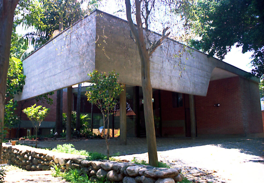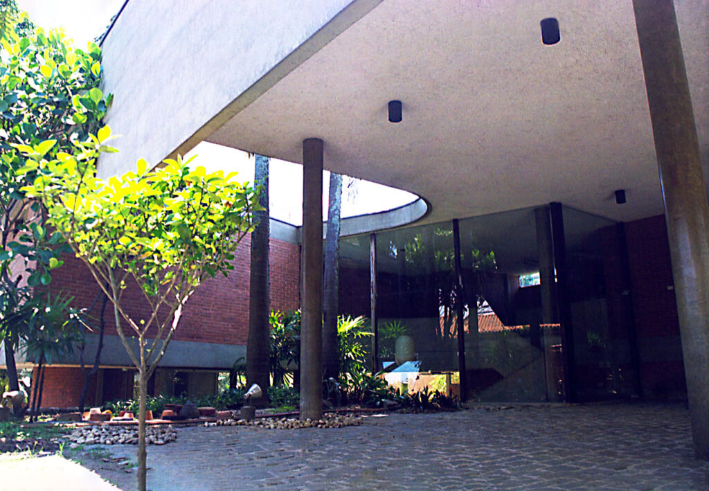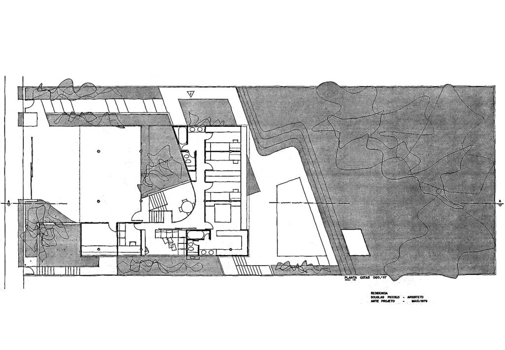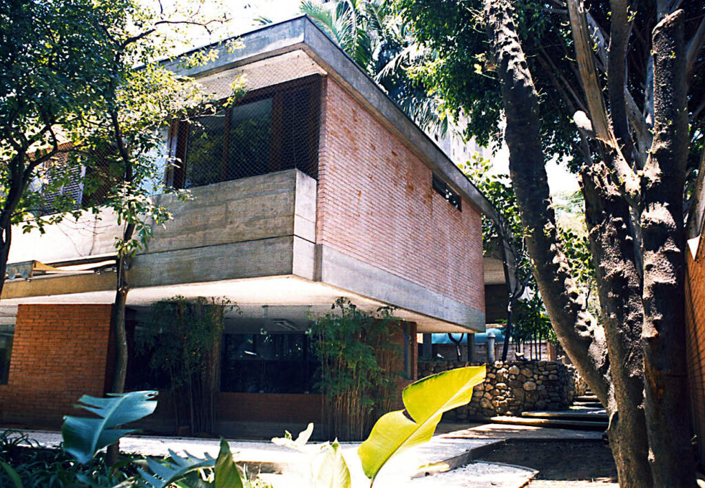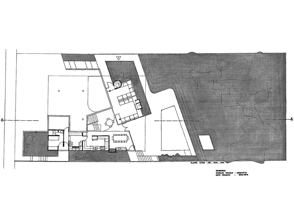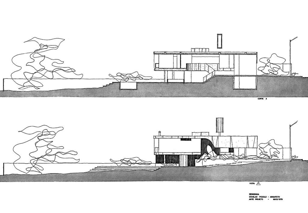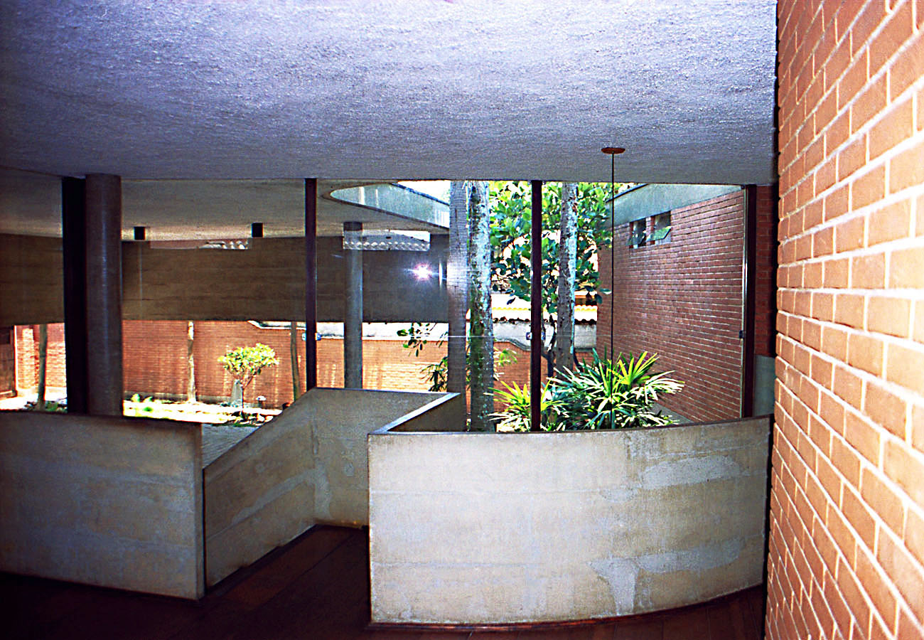 - Residência unifamiliar, projeto em terreno com uma densa vegetação adulta, que influenciou na implantação e na plasticidade. Repertório tecnológico disponível onde procurou-se reforçar a estética de cada material aplicado; estrutura em concreto aparente utilizando e mapeando a forma para este fim.