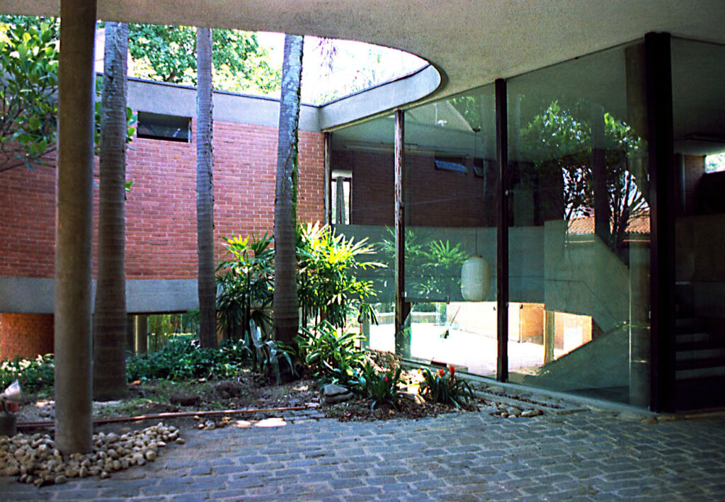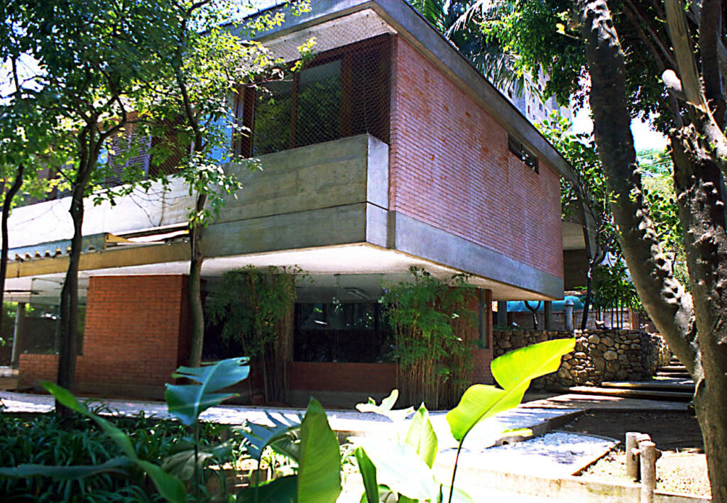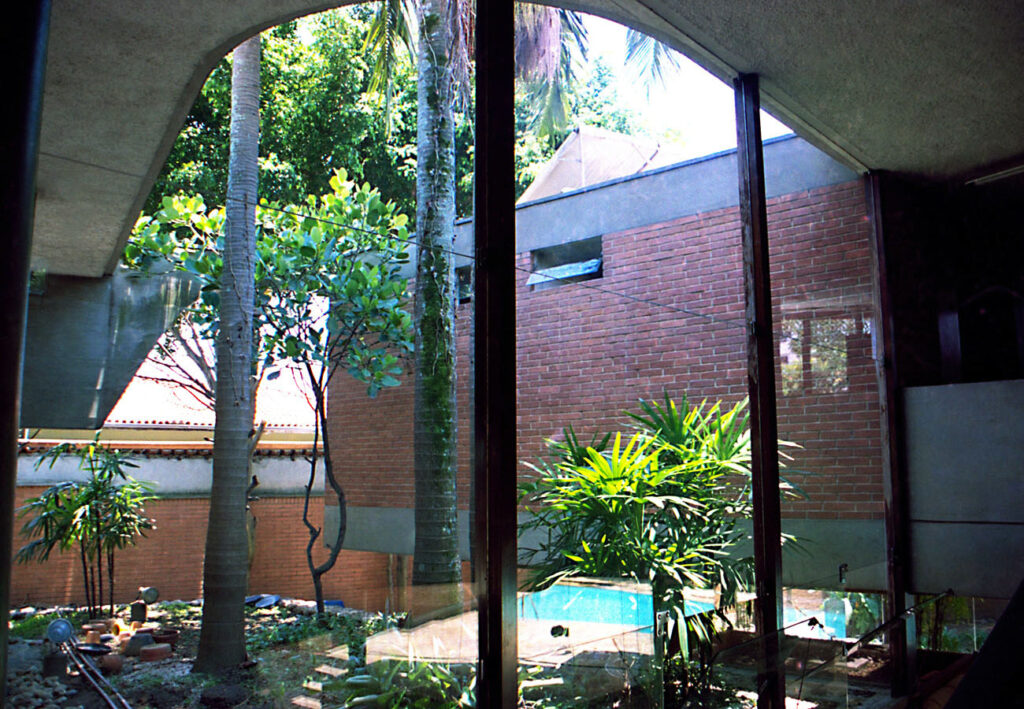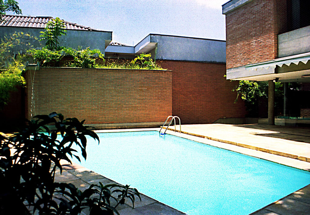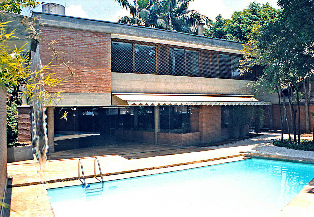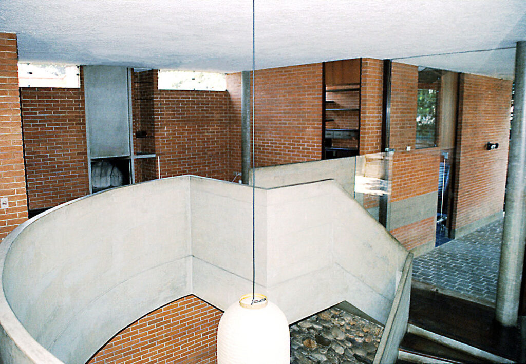 - As vedações e as partições em alvenaria de tijolos comuns foram deixados à vista. Programa enxuto e as questões de segurança que não haviam, viabilizaram a integração do interior com o exterior.