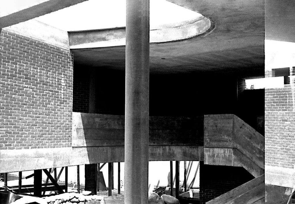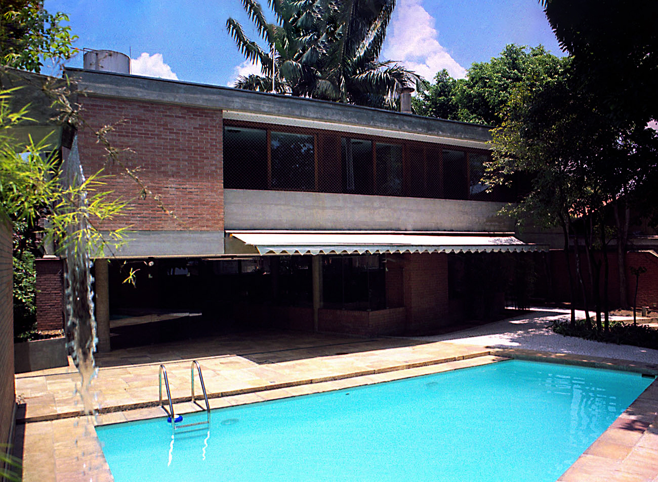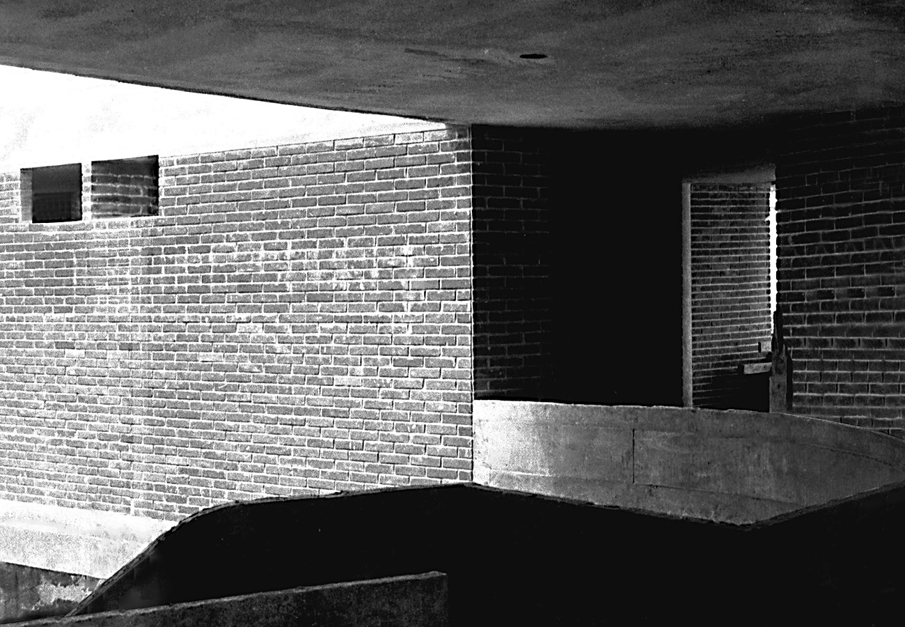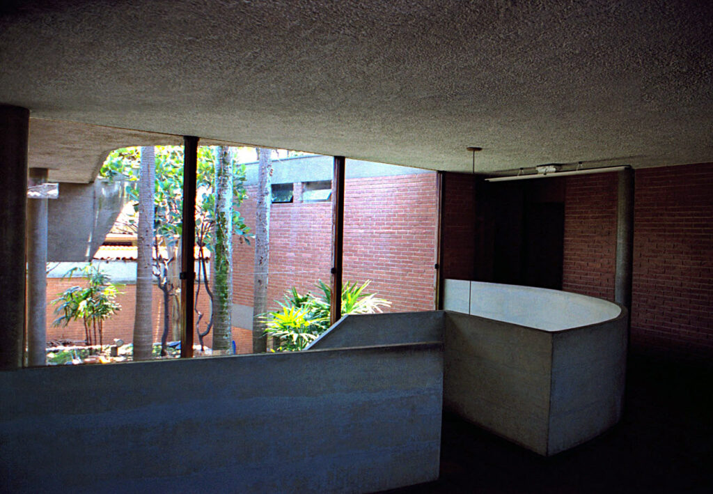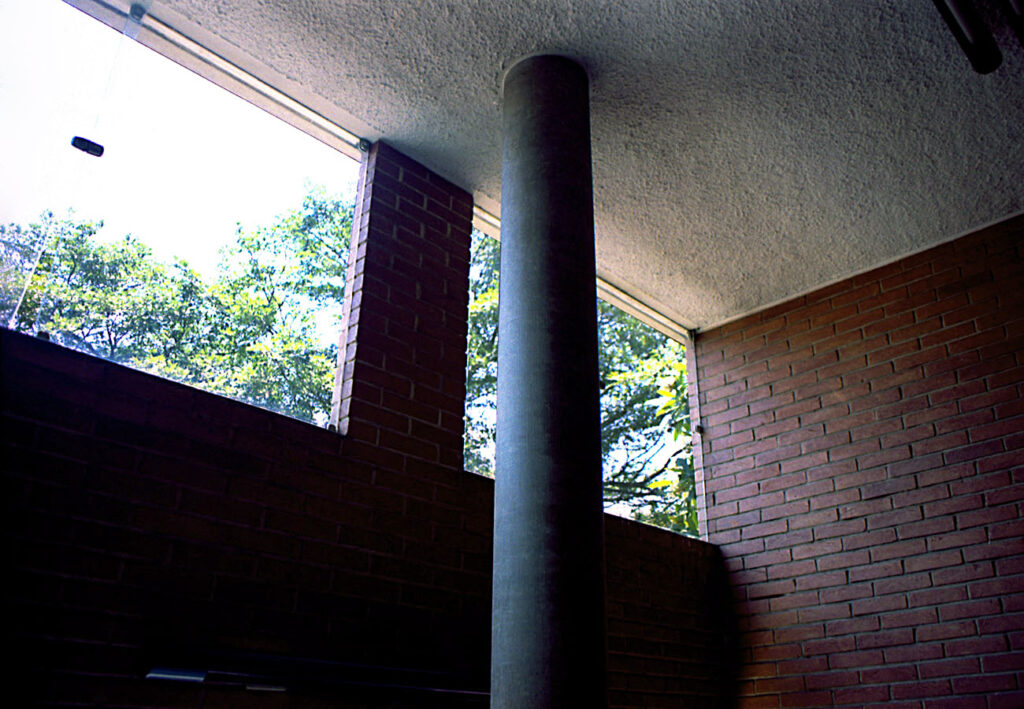 - As vedações e as partições em alvenaria de tijolos comuns foram deixados à vista. Programa enxuto e as questões de segurança que não haviam, viabilizaram a integração do interior com o exterior.