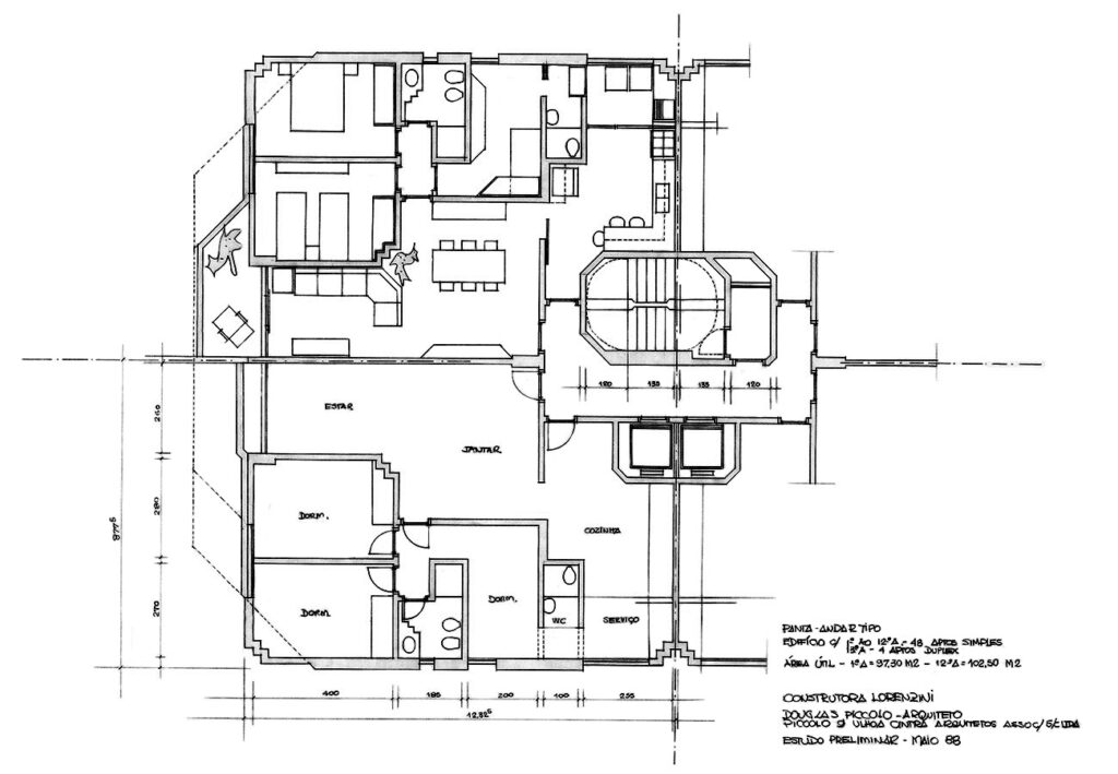- Projeto de 1986, construído a preço de custo pela Construtora Lorenzini que este ano (2016) completa 60 anos. Utilização de acabamentos que se consolidam e preservam a plasticidade, estética e definições cromáticas original.